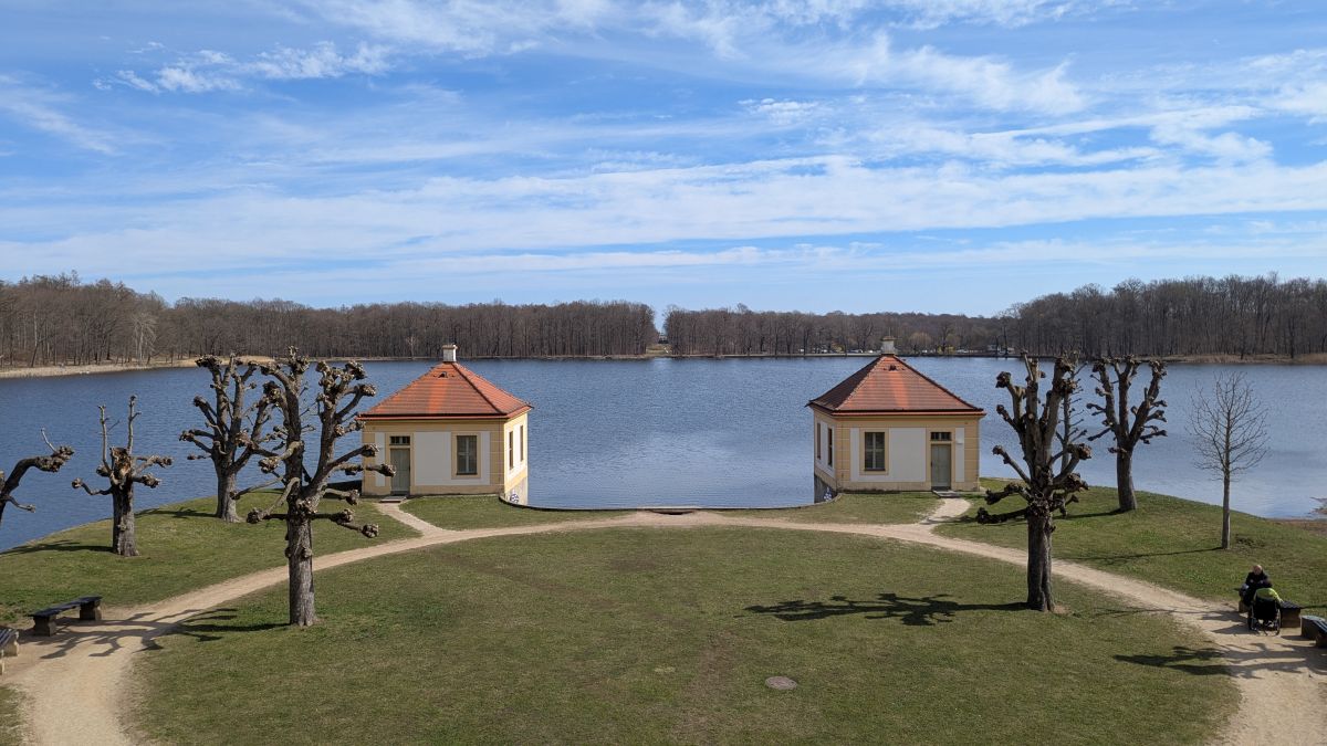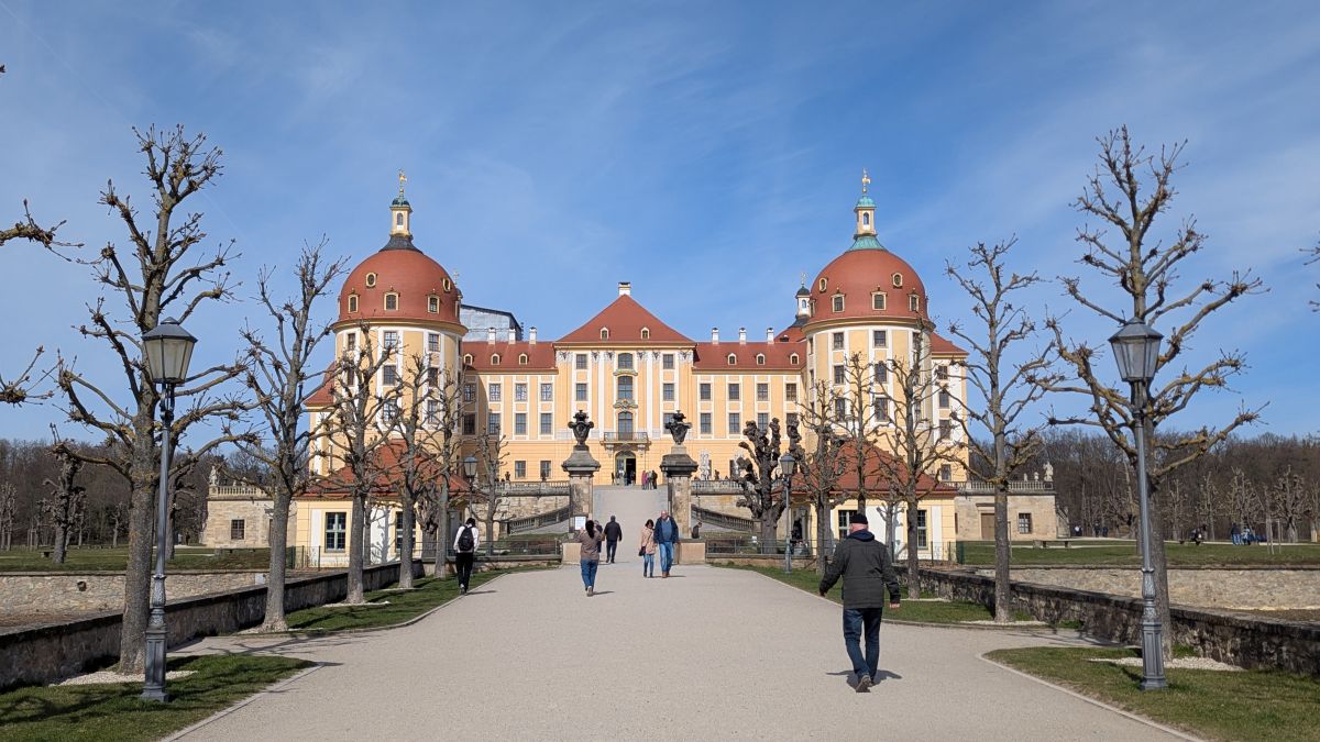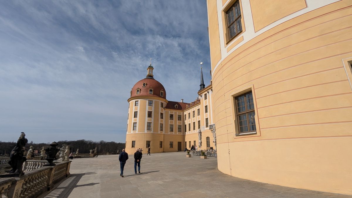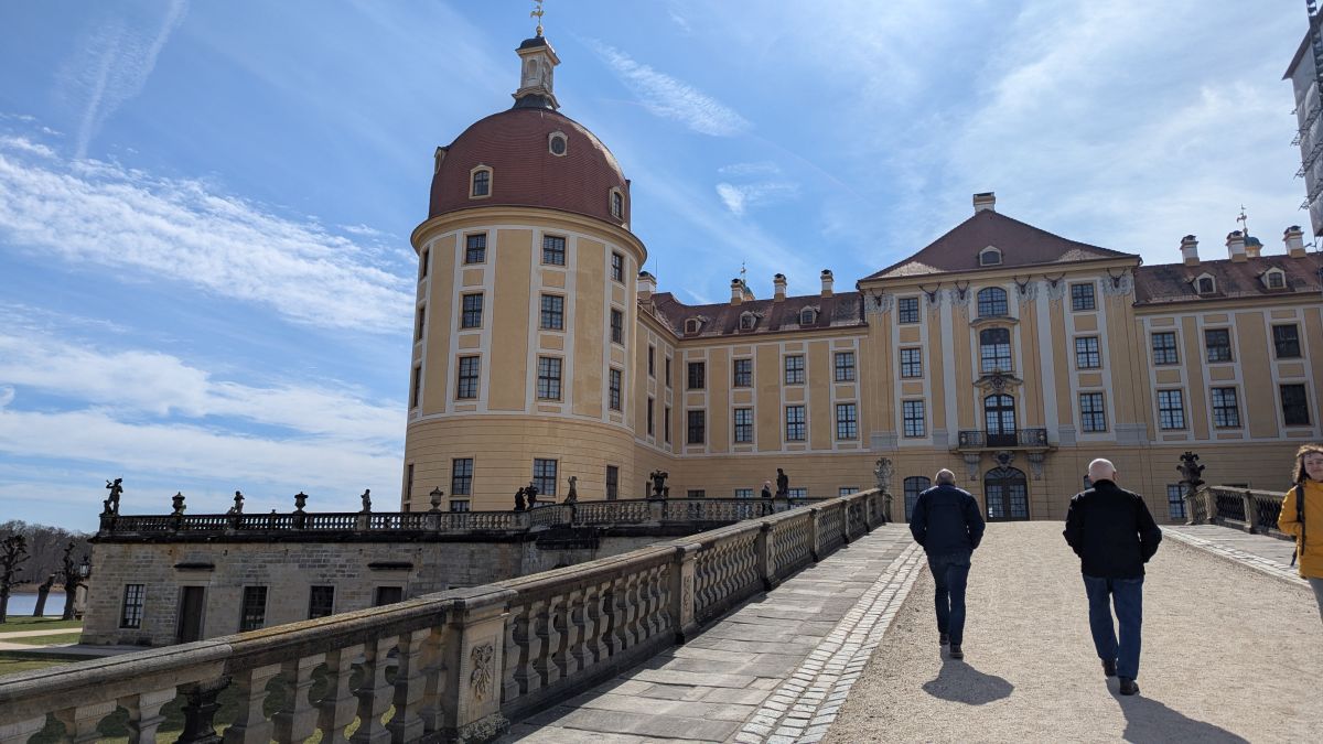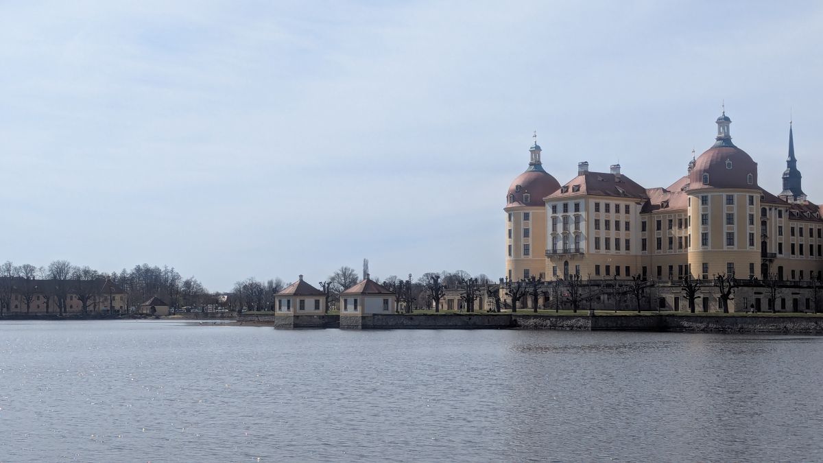 Wir sind bei meinem Vater und machen einen Ausflug nach Moritzburg. Früher waren wir oft hier. Das Jagdschloss der Könige von Sachsen liegt malerisch in einem Teich und hat schon für diverse Filme, vor allem Märchen als Kulisse gedient. „Drei Haselnüsse für Aschenbrödel“ ist wohl der Bekannteste, da er seit Jahrzehnten zu Weihnachten im ostdeutschen Fernsehen läuft. Libuše Šafránková verlor als Aschenbrödel hier ihren Schuh. Die Treppe, auf der der Schuh verloren ging, hat inzwischen eine Nachbildung aus Bronze erhalten. Sie gilt als beliebter Ort für Heiratsanträge. Im Schlossrestaurant gab es etwas zu essen in der Sonne; danach fuhren wir zum Schloss Lauterbach. Hier waren wir noch nie, schön wieder mal was Neues zu entdecken.