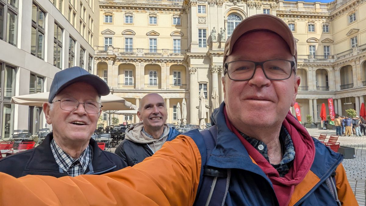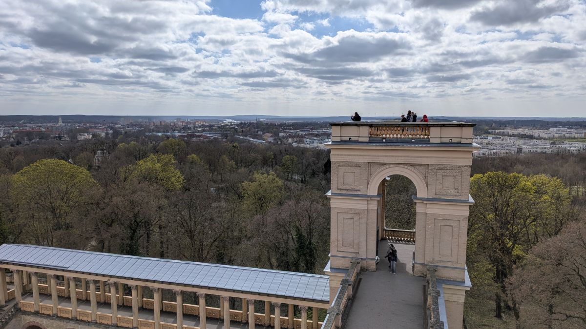 Mein Vater war zu Besuch in Berlin, und wir unternahmen einige Ausflüge. Unser erster Weg führte uns nach Potsdam zum Kleingarten, den wir gemeinsam mit einem Kollegen nutzen. Danach haben wir den Pfingstberg erklommen und die Aussicht von den Türmen des Belvederes genossen. Über den Kapellenberg ging es schließlich zurück in die Innenstadt. Am nächsten Tag stand das Humboldt Forum in Berlin-Mitte auf dem Programm. In der Alten Nationalgalerie haben wir uns die Werke der alten Landschaftsmaler angesehen, bevor wir uns am Hackeschen Markt bei einem Spanier gestärkt haben. Zurück am Schlachtensee reichte die Zeit noch für ein gemütliches Bier in der ‚Alten Fischerhütte‘. Tags darauf schwangen wir uns für eine Radtour auf die Sättel: Auf dem Mauerweg radelten wir zur alten Autobahnbrücke der A 115, um die neuesten Graffitis zu bewundern. In einer großen Runde ging es weiter zum Südwestkirchhof Stahnsdorf. Den letzten Tag ließen wir bei schönstem Wetter mit einem Spaziergang um die Krumme Lanke ausklingen. Es war wirklich schön!“