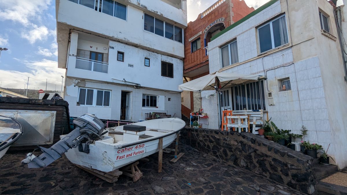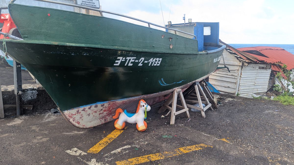 Da das Wetter unbeständiger geworden ist, begnügen wir uns heute mit einer kleinen Küstenwanderung bei Punta de la Barranquera. Der verschlafene Ort hat nicht viel zu bieten, außer Bananenfelder und einen unaufgeräumten Hafen. Nach unser kurzen Wanderung gucken wir uns den Hauptort Tejina an. Auch hier gibt es nicht viel zu sehen, nach einem Café solo und einem Cortado fahren wir wieder zurück. Den Nachmittag verbringen wir mit Telefonaten, um den Stromausfall in Berlin irgendwie zu managen. Glücklicherweise hat eine Nachbarin den Kühlschrank geleert, so dass hier nicht mehr viel passieren kann.