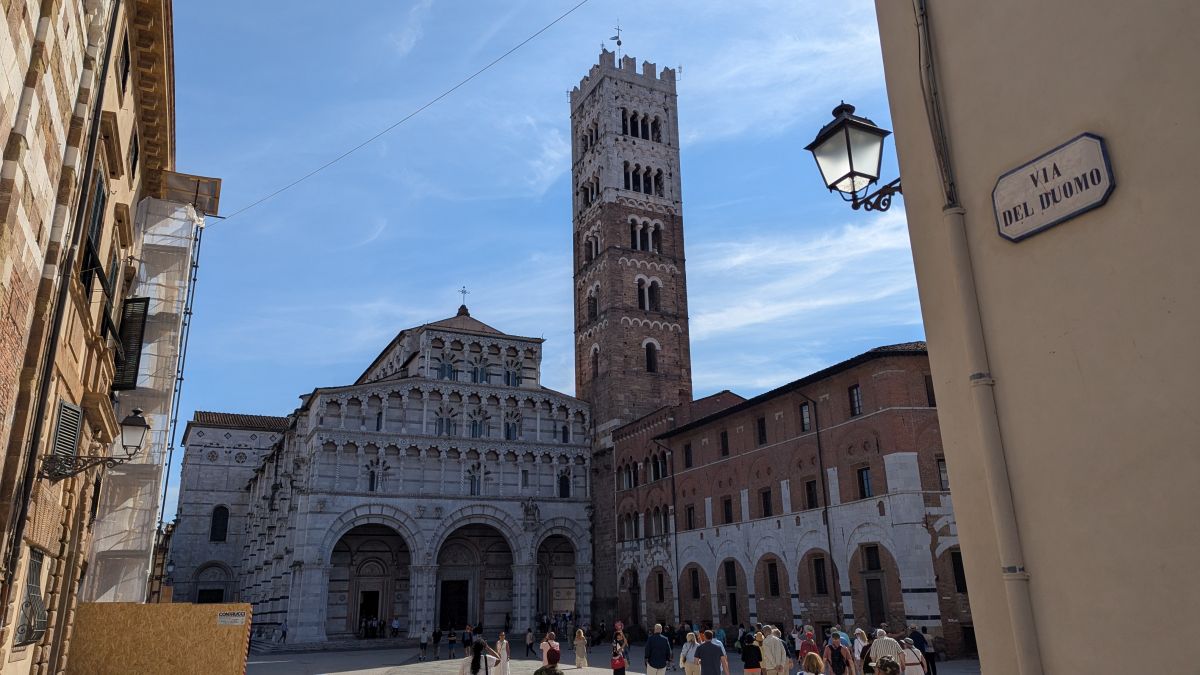 Eigentlich wollten wir einen Ausflug nach Pisa machen. Die Empfangsdame des Hotels meinte, wir sollten Pisa lieber nur einen halben Tag und den anderen halben Tag Lucca besuchen. Pisa wäre nicht so doll und ausserdem überlaufen. Also fuhren wir zunächst nach Lucca. Die Altstadt ist vollständig von einer dicken Wehranlage umgeben, durch deren Gänge man als Fußgänger in die Stadt gelangt. Zunächst besteigen wir den Torre Guinigi, der als einer der letzten von ehemals über 250 Geschlechtertürmen von Lucca gilt. Die Spitze des Turms ist ungewöhnlicherweise mit Steineichen bewachsen. Von oben hat man eine gute Übersicht über das Stadtzentrum und in die Berge. Dann streiften wir durch die Stadt, besuchten die Kirche San Michele in Foro und den Dom San Martino. An der Piazza dell’Anfiteatro aßen wir die schlechteste Pizza, die wir bisher in Italien hatten. Nach ein paar weiteren Kirchen, Palästen und Statuen waren wir durch. Da hat Pisa dann nicht mehr reingepasst. Deshalb fuhren wir an Pisa vorbei zurück zum Hotel, wobei wir einen Zwischenstopp im kleinen Örtchen Lari machten. Ein Ort wie aus dem Bilderbuch. Auf einem Hügel gelegen, in der Mitte eine Burg (Castello dei Vicari), Nudelmanufaktur, Theater, Bar Centrale, Kirche, Pizzeria, Rathaus, Apotheke, Gemischtwarenladen und in der Sonne dösende Katzen. Herrlich, schön dass es noch so etwas gibt.