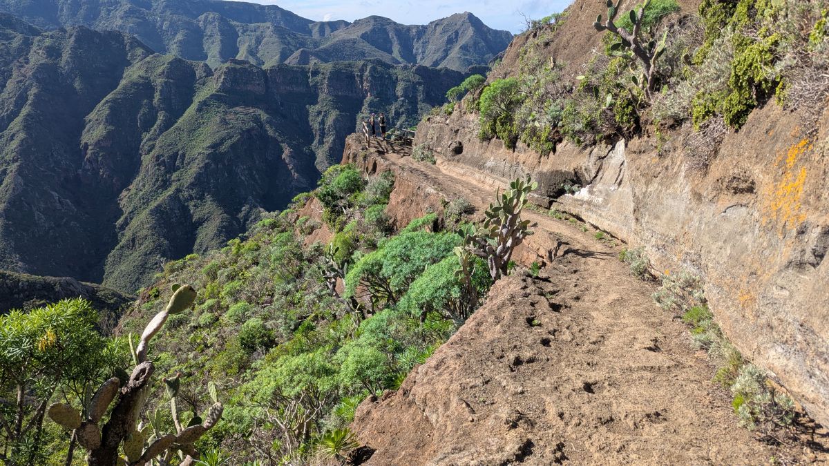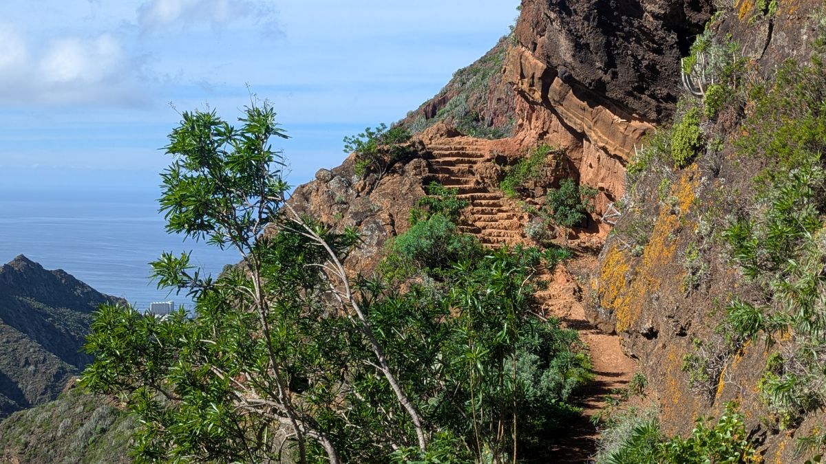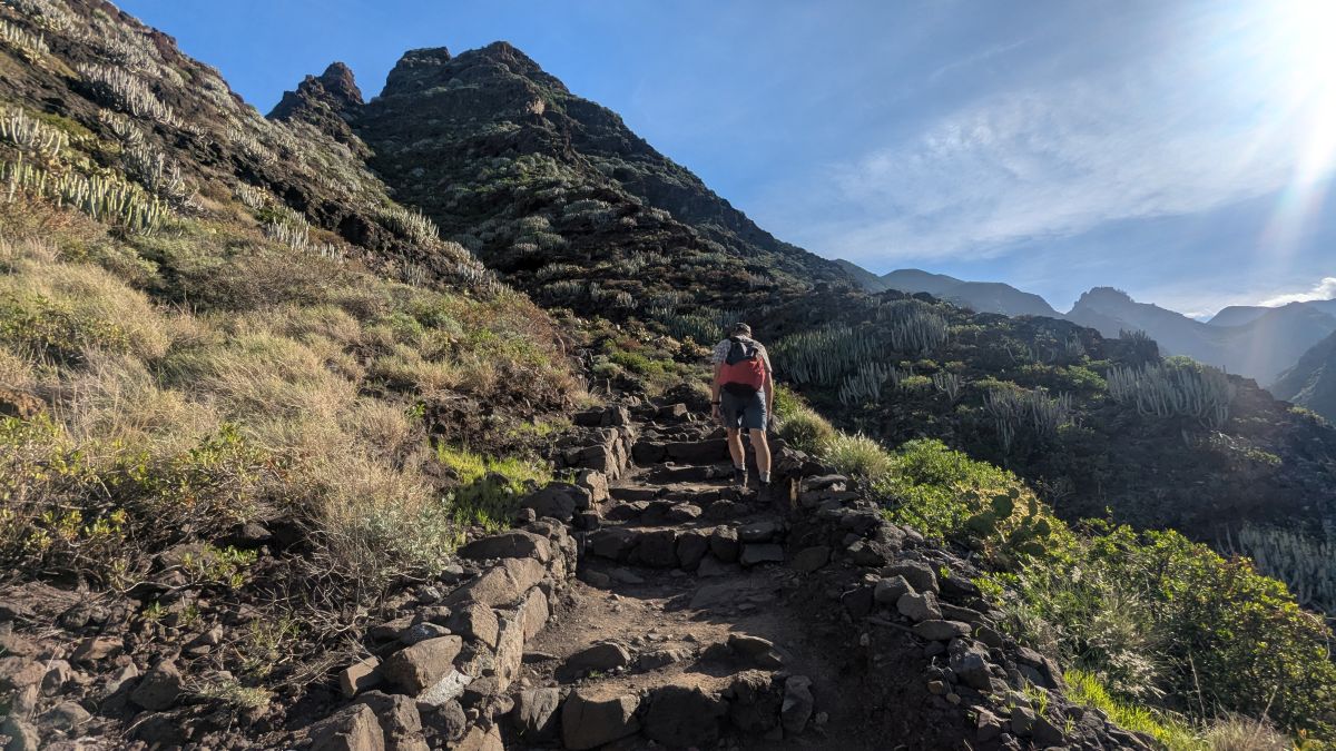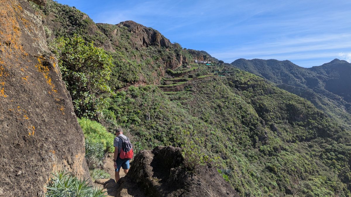 Eigentlich wollten wir am letzten Tag des Jahres faul sein. Aber das Wetter ist zu schön. Morgen könnte es Regen geben, so dass wir das Faulsein verschieben. Diese Wanderung haben wir bereits vor ein paar Jahren gemacht; sie war uns in guter Erinnerung. Der aussichtsreiche Weg führt uns ins Bergdorf Chinamada, wofür 600 Höhenmeter zu überwinden sind. Der Gasthof im Dorf war leider geschlossen, so dass wir mit einem Eiweißriegel zufrieden sein mussten. Bei Rückkehr in Punta Hidalgo fanden wir erstaunlicherweise eine offene Gaststätte vor, wo wir uns stärken konnten. Der Jahreswechsel kann kommen. Wir wünschen allen Lesern ein gutes Jahr 2026!