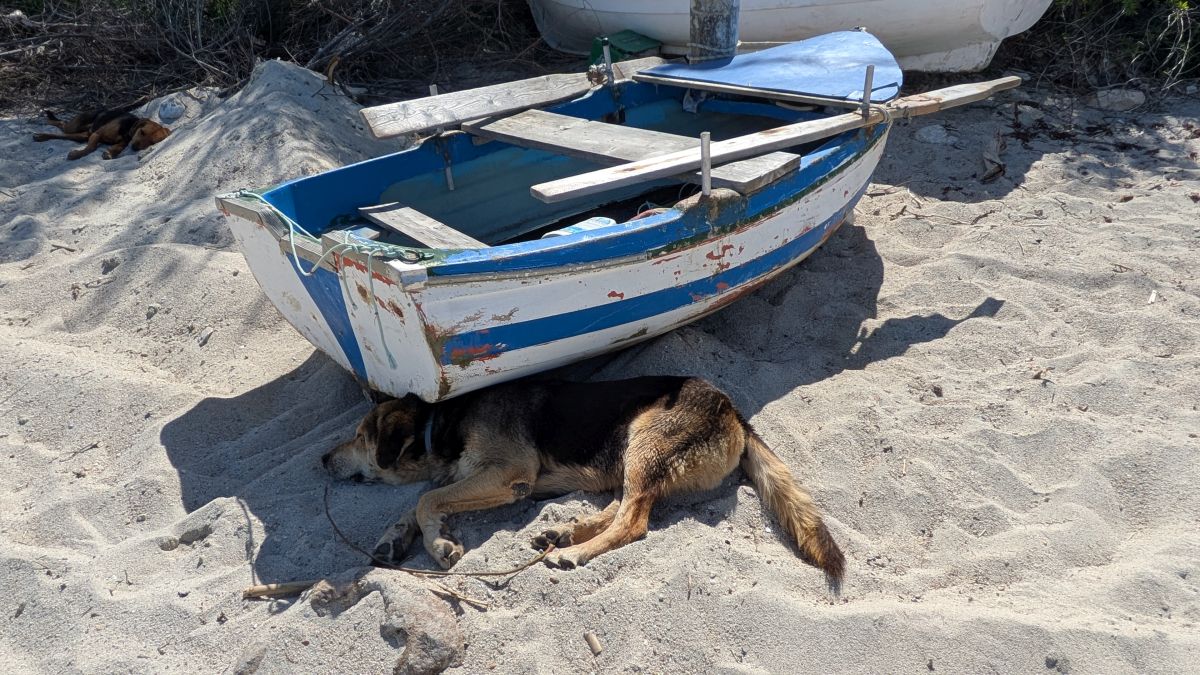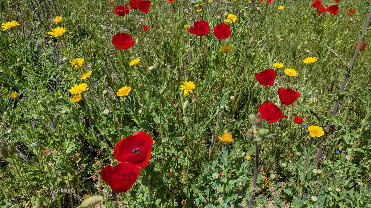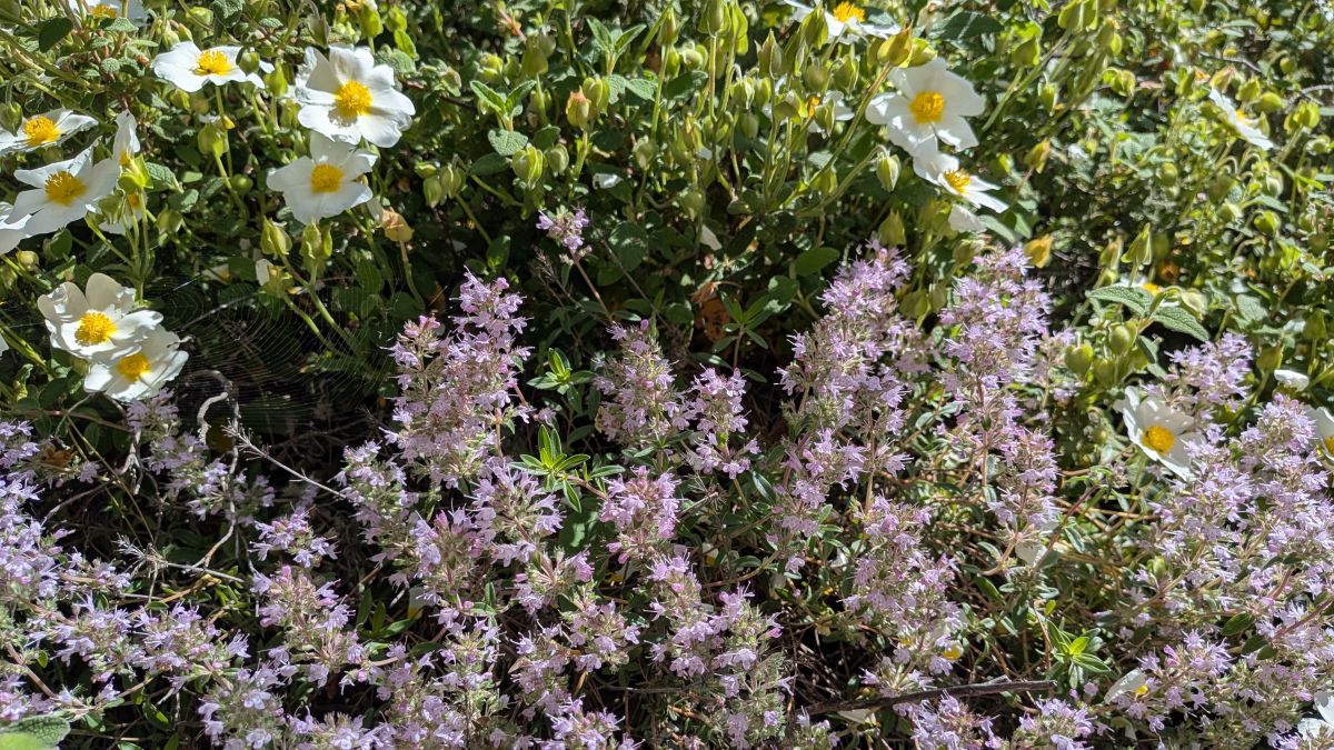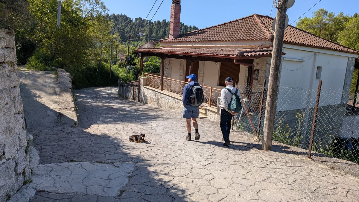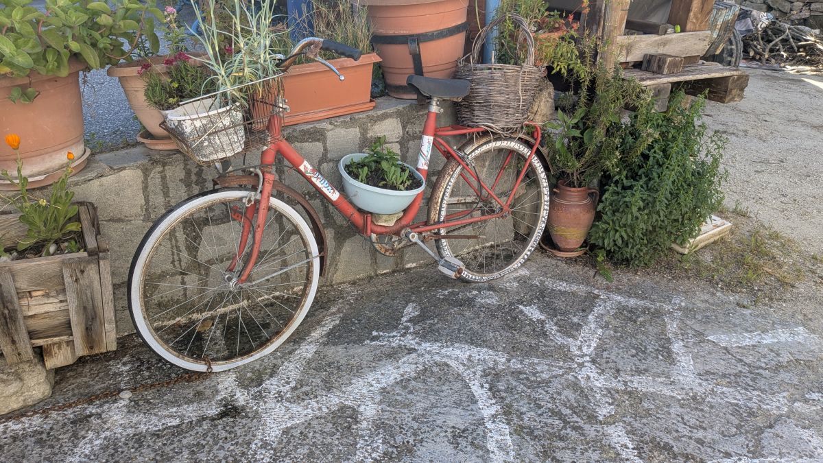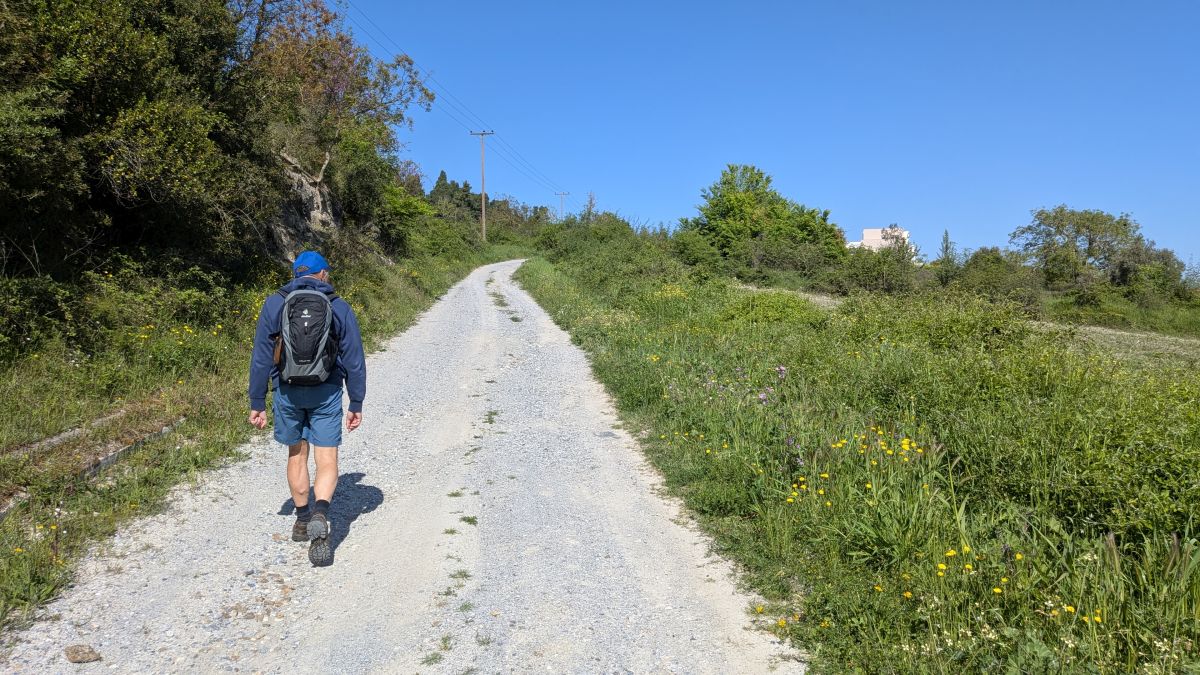 Heute fahren wir ins Dorf Kassandrino, wo wir eine Wanderung durch die Hügel starten. Zunächst trinken wir einen griechischen Kaffee im Dorf-Kaffenion. Rudi macht danach eine kleine Wanderung um das Dorf, wir eine Größere, die hinauf auf die Hügel führt. Hier haben wir Aussichten auf beide Meeresseiten, bis hin zum schneebedeckten Olymp. Die Fotos davon sind auf Grund der Entfernung aber eher unspektakulär. Wunderschön sind wieder die üppig blühenden Wiesen. Zurück in Afytos wagen wir das erste Mal, im Meer schwimmen zu gehen. Das Wasser ist herrlich, kalt und glasklar.