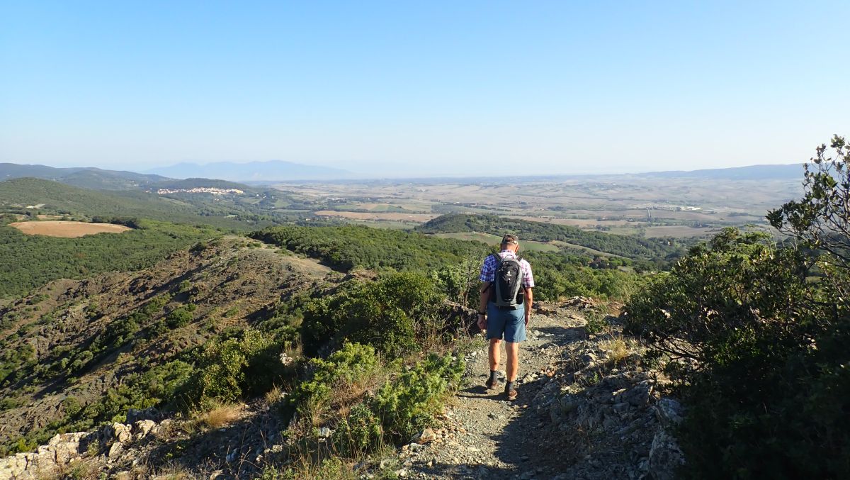 beim Aufstieg auf den Monte Pelatobeim Aufstieg auf den Monte Pelato beim Aufstieg auf den Monte Pelato Kammweges gibt mengenweise (unbekannte) PilzeAusblickeMofette, blubbernd und stinkendder Klebrige Alant blühtQuelle (Sorgente Padula)PfifferlingeWeg durch Baumheidewald und SteineichenRückwegsoll wohl an den Mond erinnern- Valle della Lunavulkanische VergangenheitBachüberquerungFarnSonnenuntergangAbendhimmel mit Isola di Gorgona