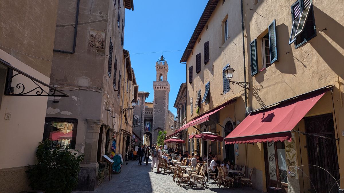 Eigentlich wollten wir einen Ausflug nach Pisa machen. Die Empfangsdame des Hotels meinte, wir sollten Pisa lieber nur einen halben Tag und den anderen halben Tag Lucca besuchen. Pisa wäre nicht so doll und ausserdem überlaufen. Also fuhren wir zunächst nach Lucca. Die Altstadt ist vollständig von einer dicken Wehranlage umgeben, durch deren Gänge man als Fußgänger in die Stadt gelangt. Zunächst besteigen wir den Torre Guinigi, der als einer der letzten von ehemals über 250 Geschlechtertürmen von Lucca gilt. Die Spitze des Turms ist ungewöhnlicherweise mit Steineichen bewachsen. Von oben hat man eine gute Übersicht über das Stadtzentrum und in die Berge. Dann streiften wir durch die Stadt, besuchten die Kirche San Michele in Foro und den Dom San Martino. An der Piazza dell’Anfiteatro aßen wir die schlechteste Pizza, die wir bisher in Italien hatten. Nach ein paar weiteren Kirchen, Palästen und Statuen waren wir durch. Da hat Pisa dann nicht mehr reingepasst. Deshalb fuhren wir an Pisa vorbei zurück zum Hotel, wobei wir einen Zwischenstopp im kleinen Örtchen Lari machten. Ein Ort wie aus dem Bilderbuch. Auf einem Hügel gelegen, in der Mitte eine Burg (Castello dei Vicari), Nudelmanufaktur, Theater, Bar Centrale, Kirche, Pizzeria, Rathaus, Apotheke, Gemischtwarenladen und in der Sonne dösende Katzen. Herrlich, schön dass es noch so etwas gibt.