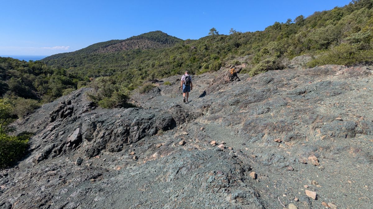 Heute haben wir uns eine Wanderung im Hinterland vorgenommen. Wir besteigen zunächst den Monte Pelato, danach geht es zu einer blubbenden Mofette mit Schwefelgeruch und weiter zu einer Quelle. Hier wachsen wieder mengenweise Pfifferlinge, was wir nicht erwartet hatten. Über das felsige Valle della Luna geht es zurück zum Ausgangspunkt, der nach ca. 15 km erreicht ist.