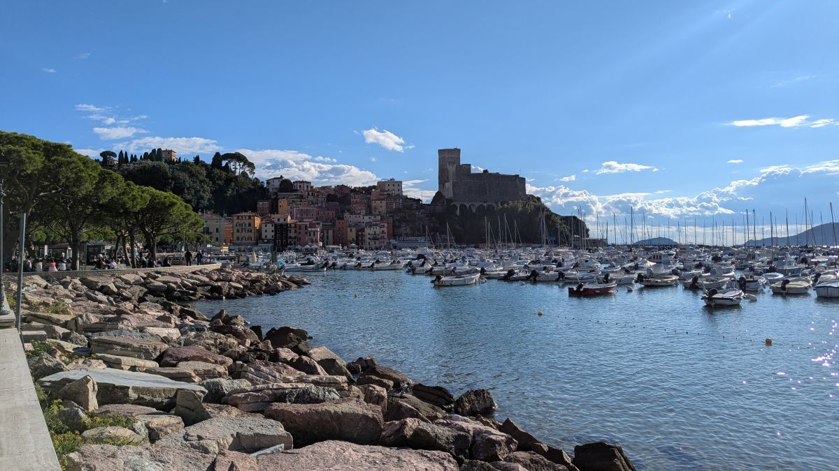 Montemarcello Ausblick von Montemarcello Montemarcello Montemarcello Weg zum Monte Murlo Ödland-Aster Galatella sedifoliaBlick vom Monte Morlo auf die angeknabberten Berge von Caccara (Marmorabbau)Weg hinunter nach TellaroTellaronackter Mann auf BootGassengewirr von TellaroTellaroTellaroenger Weg zurück Genusswandernkurzes WolkenintermezzoLericiLericiLerici Piazza Giuseppe GaribaldiLerici Hafenpromenade Castello di Lerici, Castello di San Giorgio Häuser an der Hafenpromenade